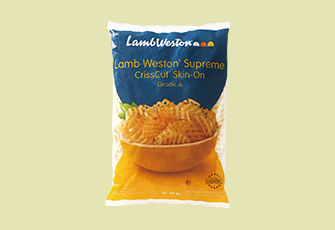 ポテトスターチで見えないコーティングを施しているのでクリスピー感が長く持続します。独創的なワッフル型の形状はボリューム感も出しやすくメニューのアレンジにも幅広く対応できます。